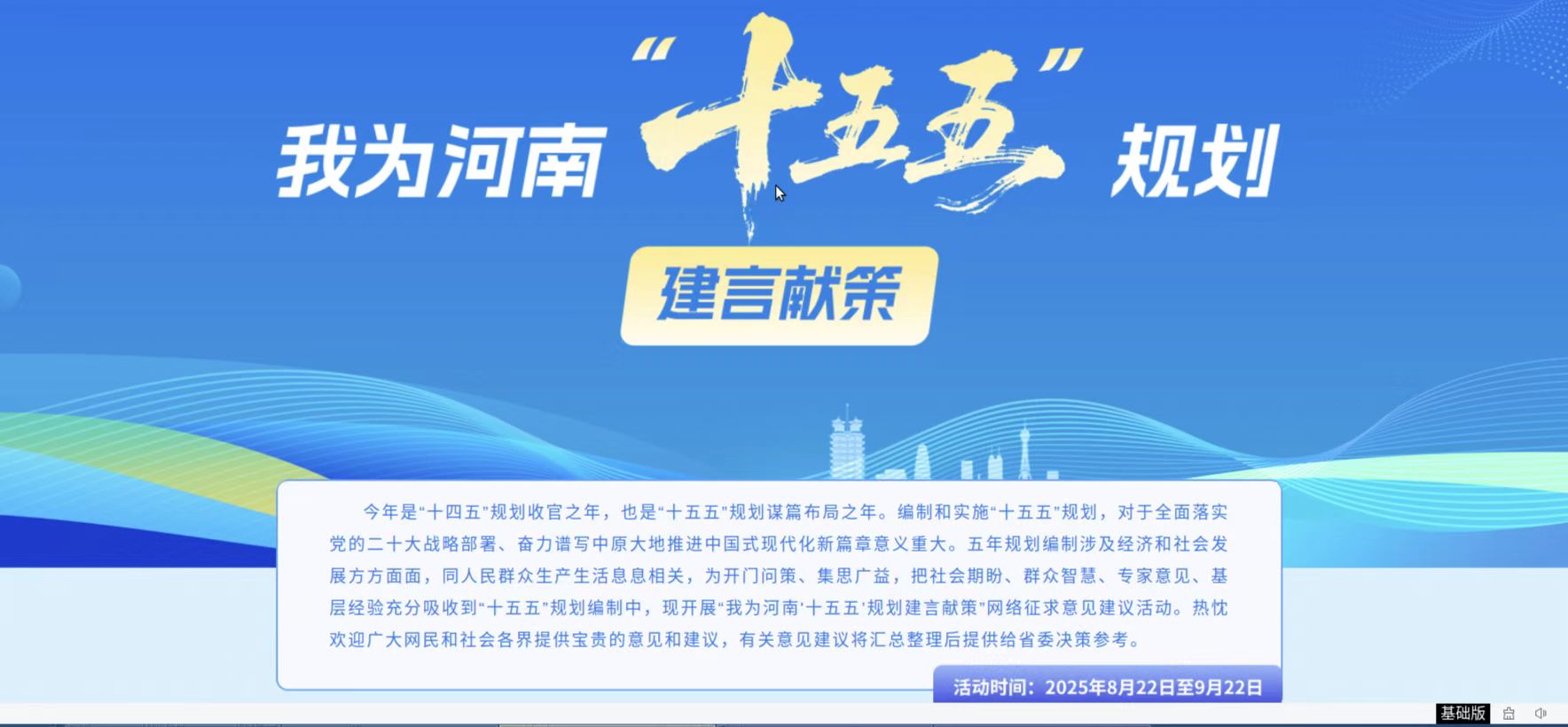 關于開展“我為河南‘十五五’規(guī)劃建言獻策”網絡征求意見建議活動的公告